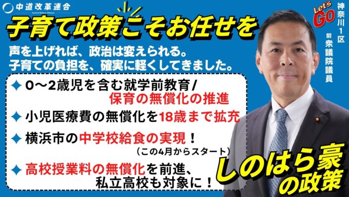 しのはら豪 中道改革連合 前衆議院議員(神奈川県第1選挙区)(金沢区・磯子区・中区)