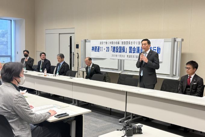 集会では、「建設で働く仲間の命綱、建設国保を守ろう」をテーマに、建設現場で働く皆さんから、